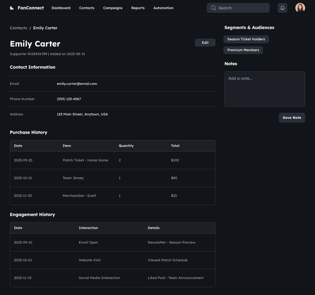 Unlike generic CRM platforms, Touchline CRM is designed around how football clubs actually operate. It understands the importance of gate receipts, season tickets, sponsorships and club shops, particularly at non-league and semi-professional levels. The system is built to support these revenue streams, not work against them.