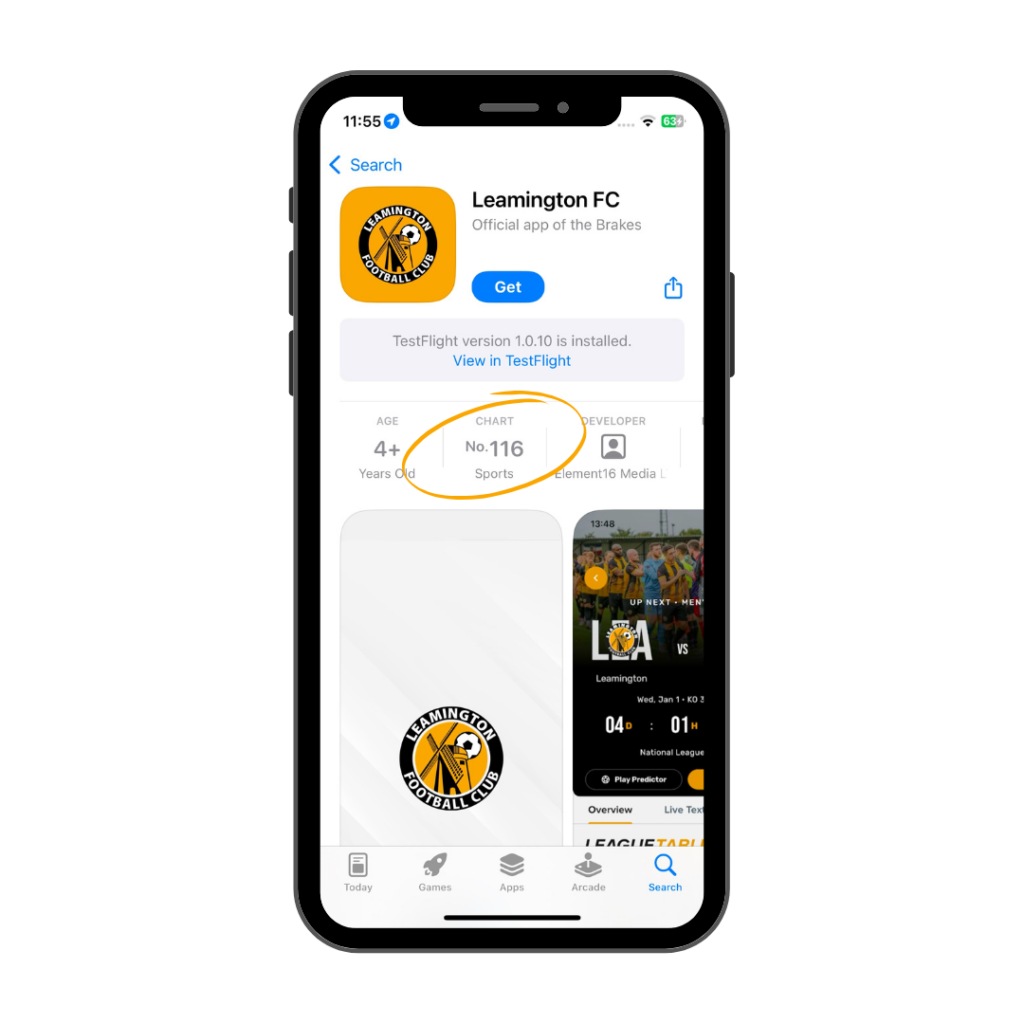 On the day of its launched, the Leamington FC app reached the top #120 apps for the UK – Sports category on the app store, outperforming the Aston Villa & Newcastle United apps on that day!