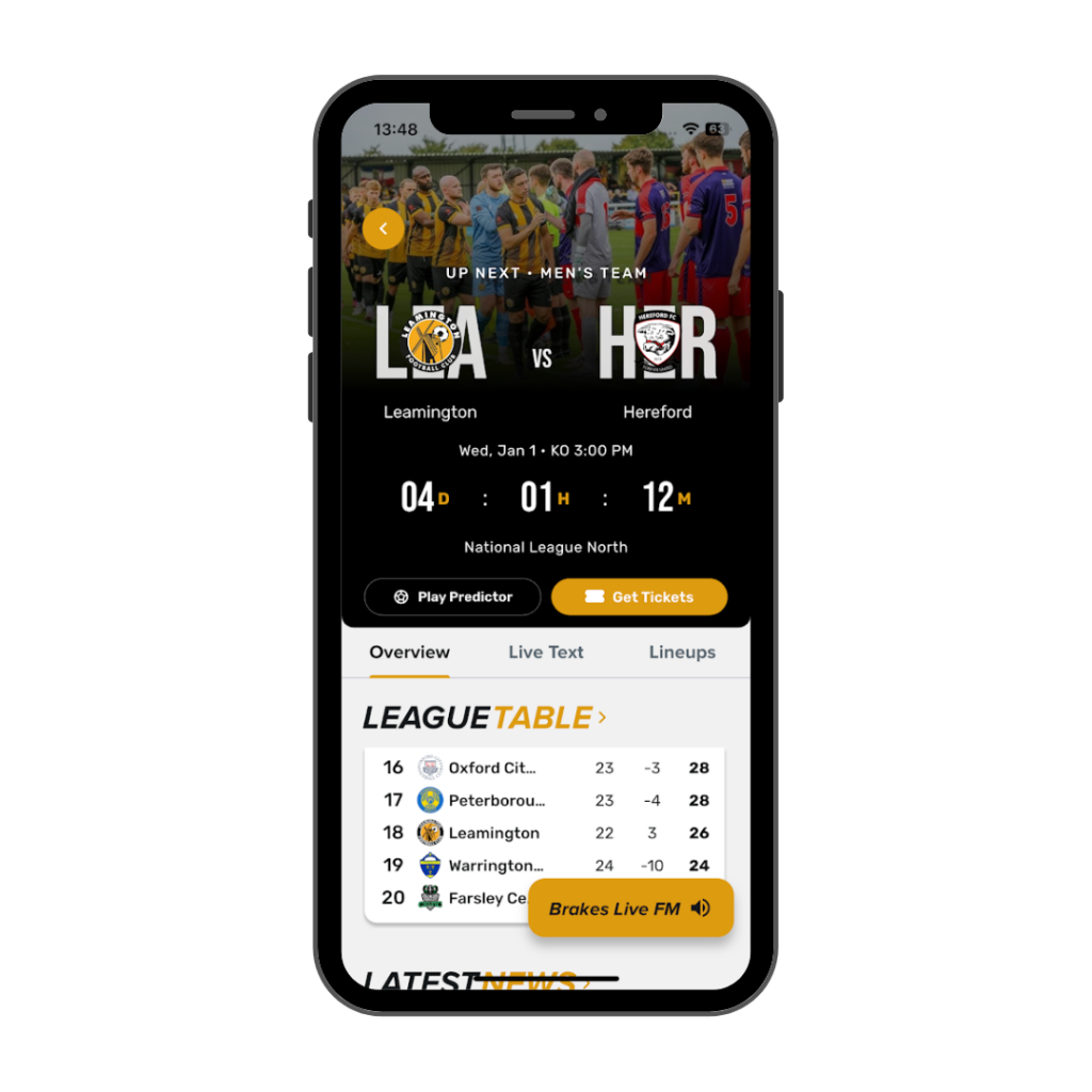 Launched on 1st Jan 2025, Leamington became the second club to join the Touchline Club Scheme. This community-focused club now has a bespoke mobile app to boost their fan engagement and communication.